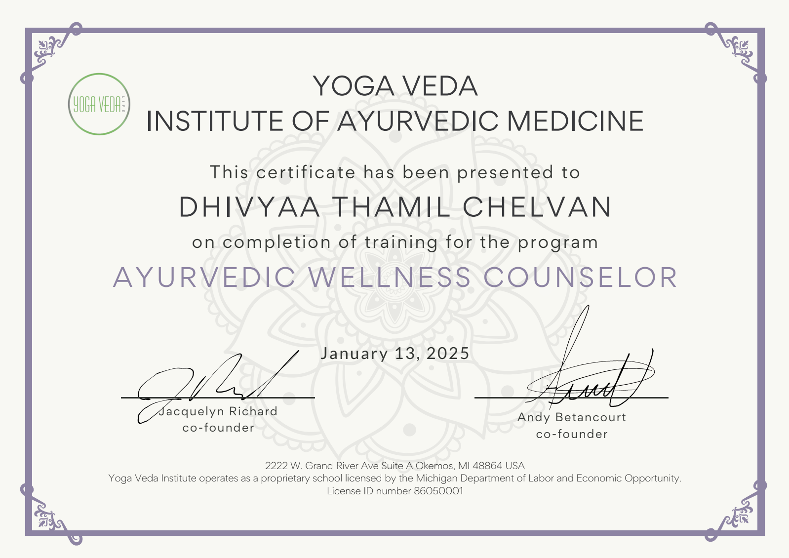 Dhivyaa’s Credentials & Awards